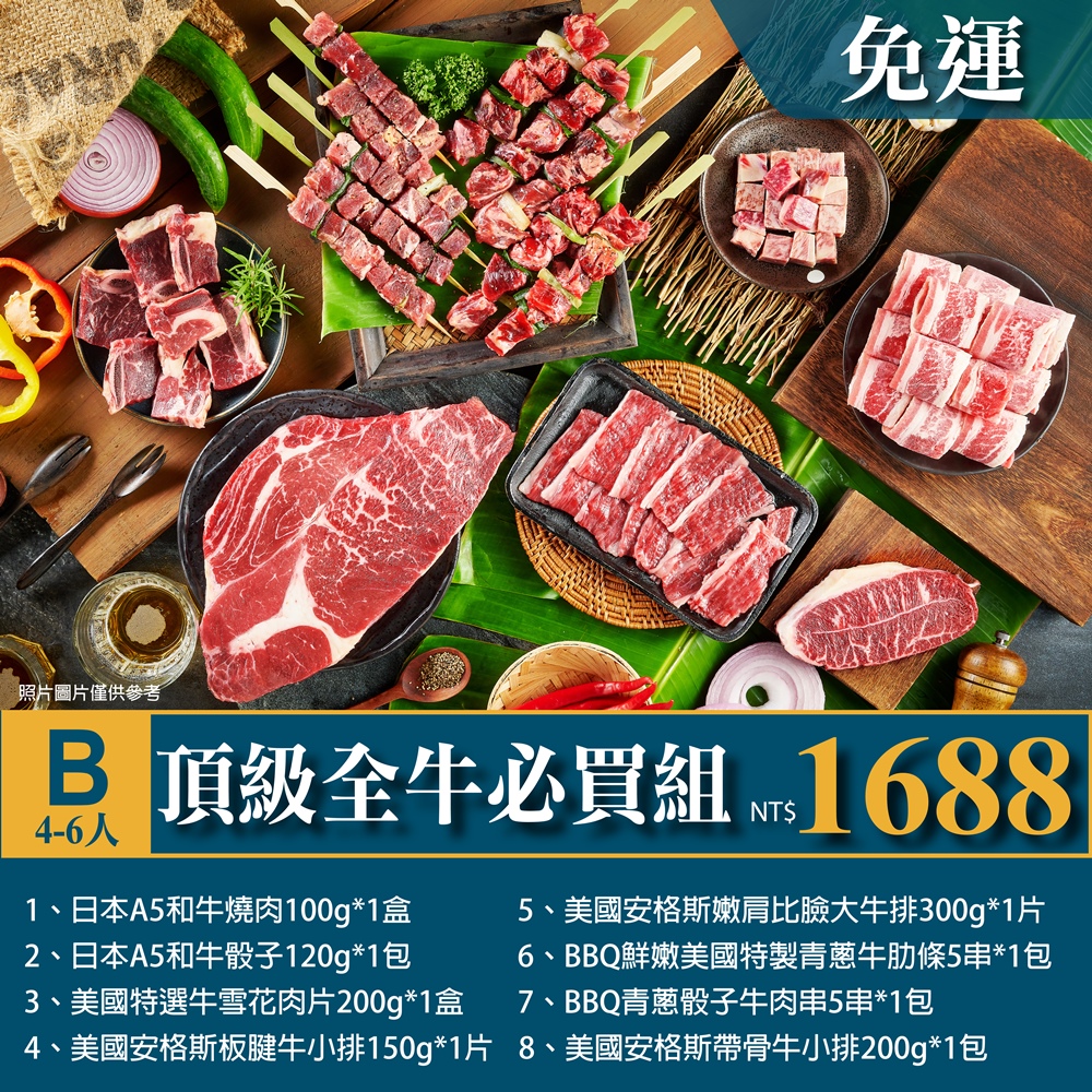 B、4-6人 BBQ頂極熟成全牛經典必買組 $1688